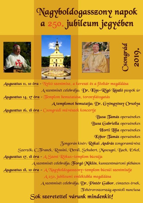 Szentmisék rendje a csongrádi plébániák templomaiban és azok fíliáiban